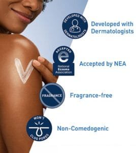 CeraVe Daily Moisturizing Lotion is a lightweight, oil-free moisturizer with three essential ceramides that locks in skin’s moisture and helps restore the skin’s protective barrier.